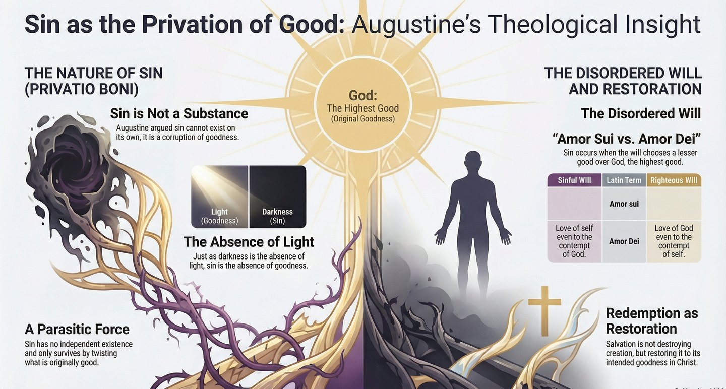In this episode, we explore Augustine of Hippo’s classic definition of sin as the privation of good. Rather than describing evil as something God created, Augustine argued that sin is a corruption of what was originally made good. This insight protects the truth of God’s perfect goodness while offering a profound explanation for the presence of evil in the world.