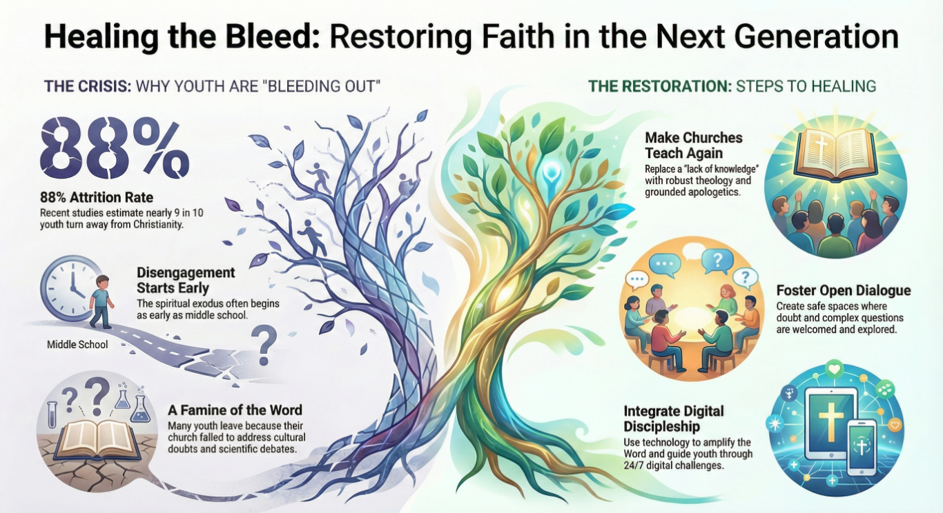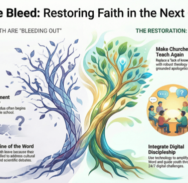 In this video, we address the growing crisis of spiritual “bleeding out” among the next generation. Many young people disengage from church life even before college, not because they hate Christianity, but because they were never equipped with solid biblical teaching or meaningful answers to tough cultural, philosophical, and scientific questions.